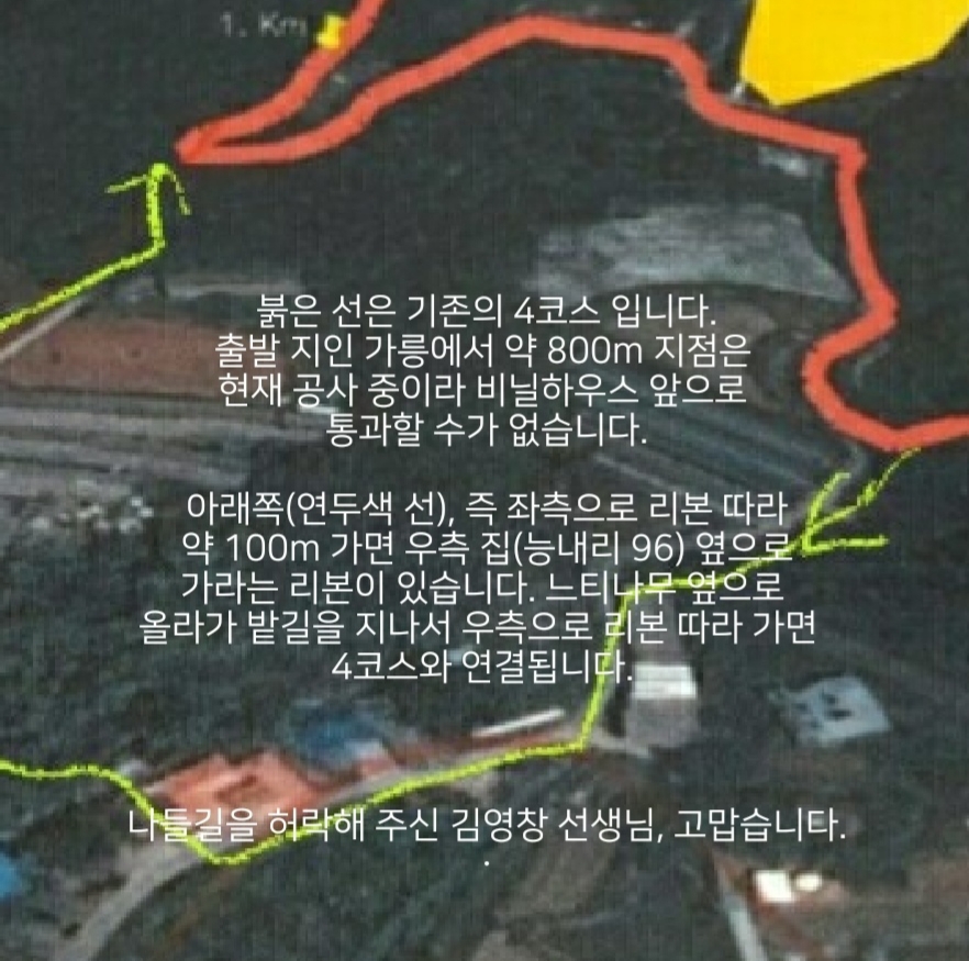 4코스 해가 지는 마을길, 일부 구간 코스 변경 안내