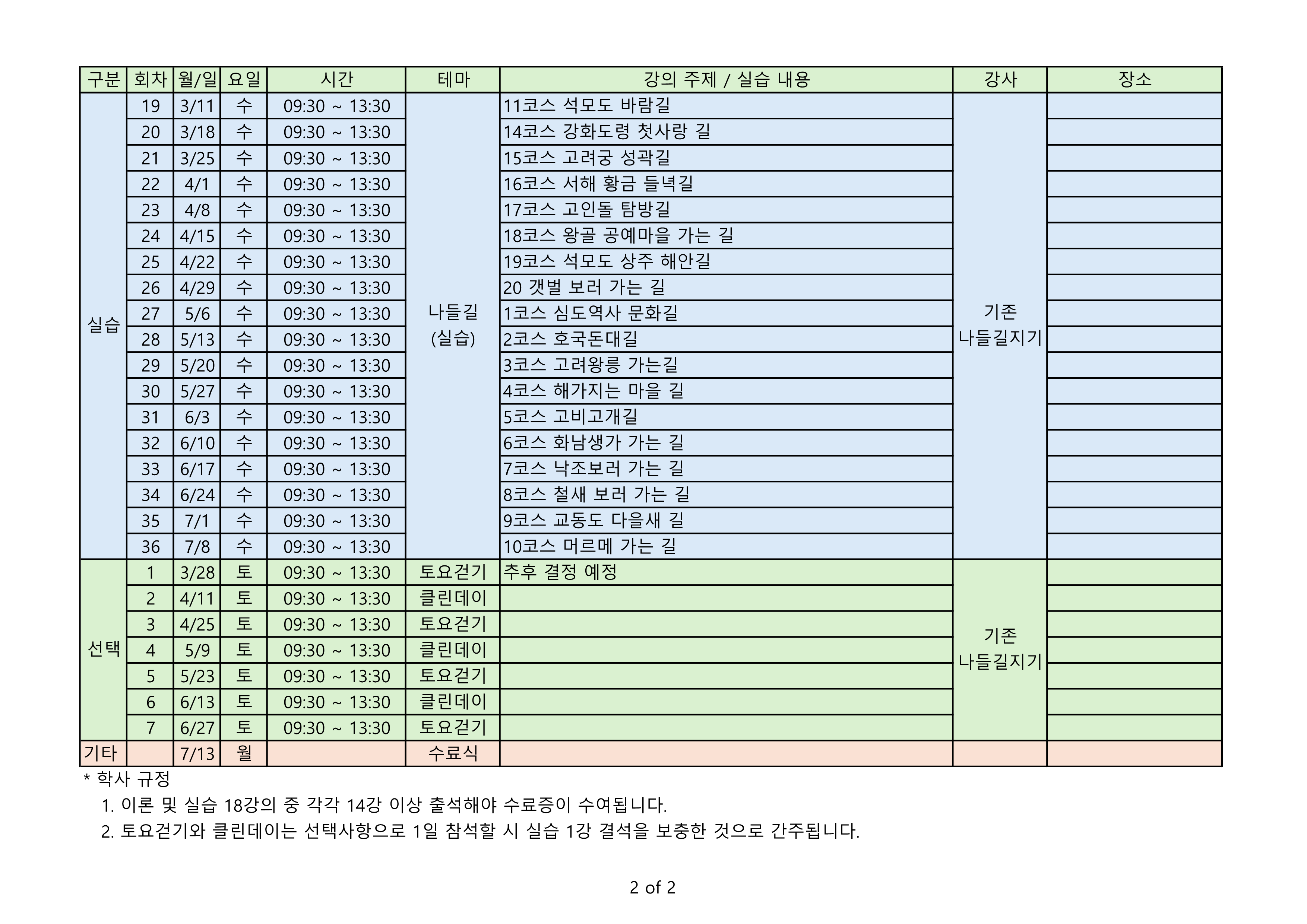 * 교육장소: (사)강화나들길 사무실 또는 지정장소