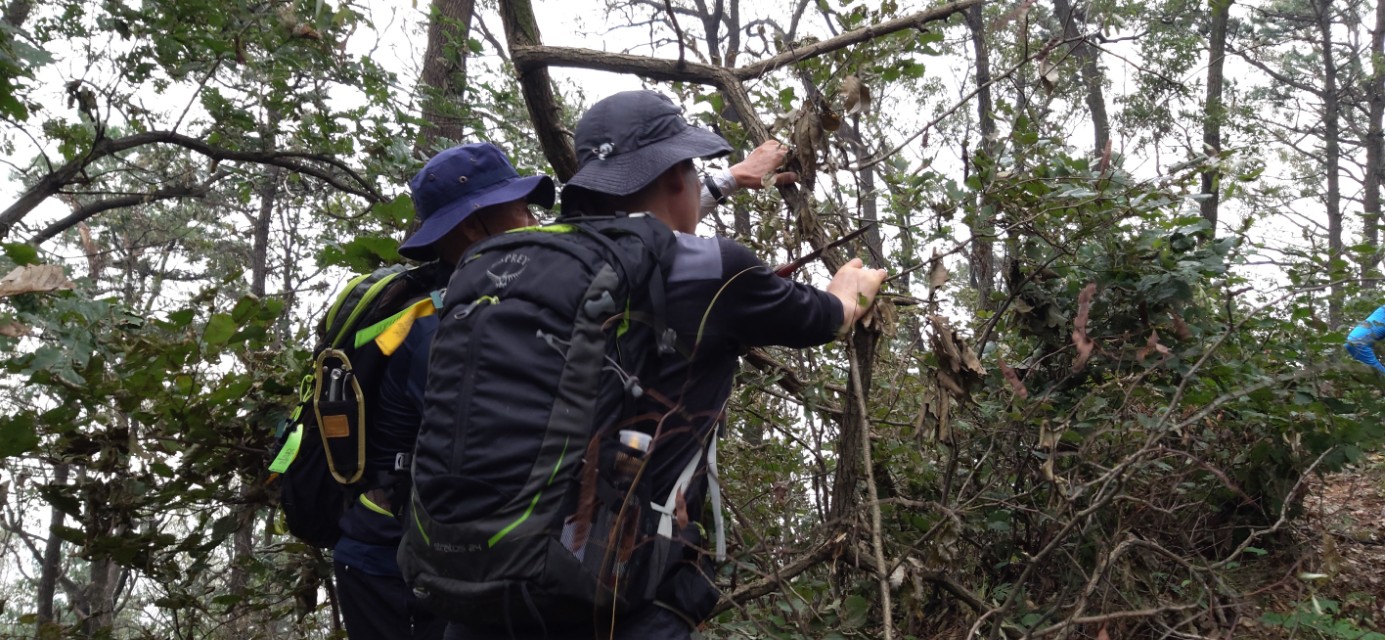 쓰러진 나무를 옮기고 자르며 막힌 길을 내고 뚫으면서 걸었습니다.