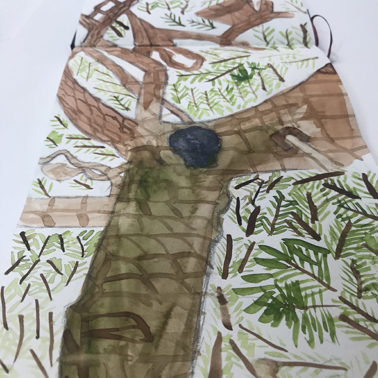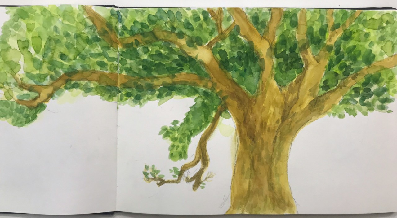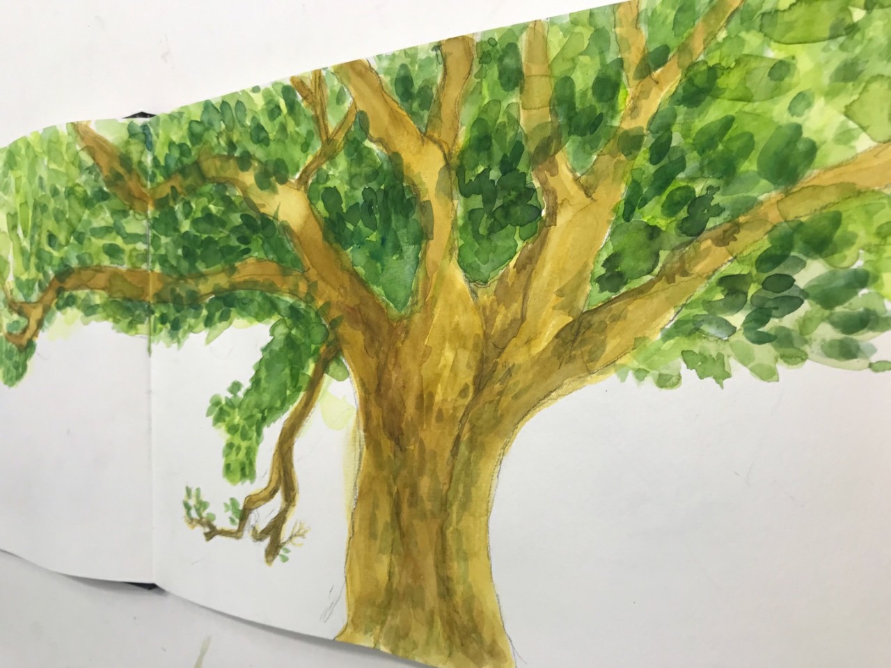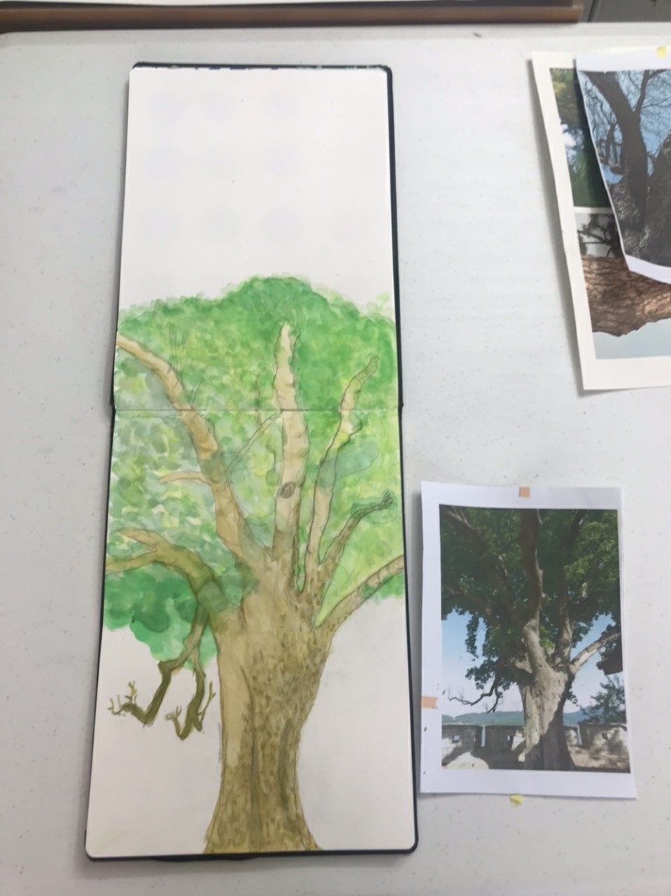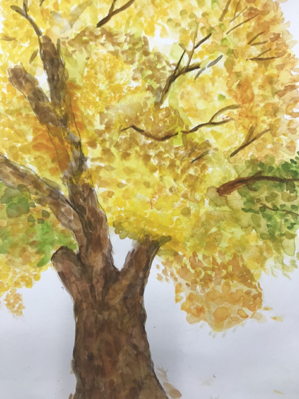 지난주 수업에 이어 밑그림후에 수채화로 나무의 그림을 완성하였습니다.