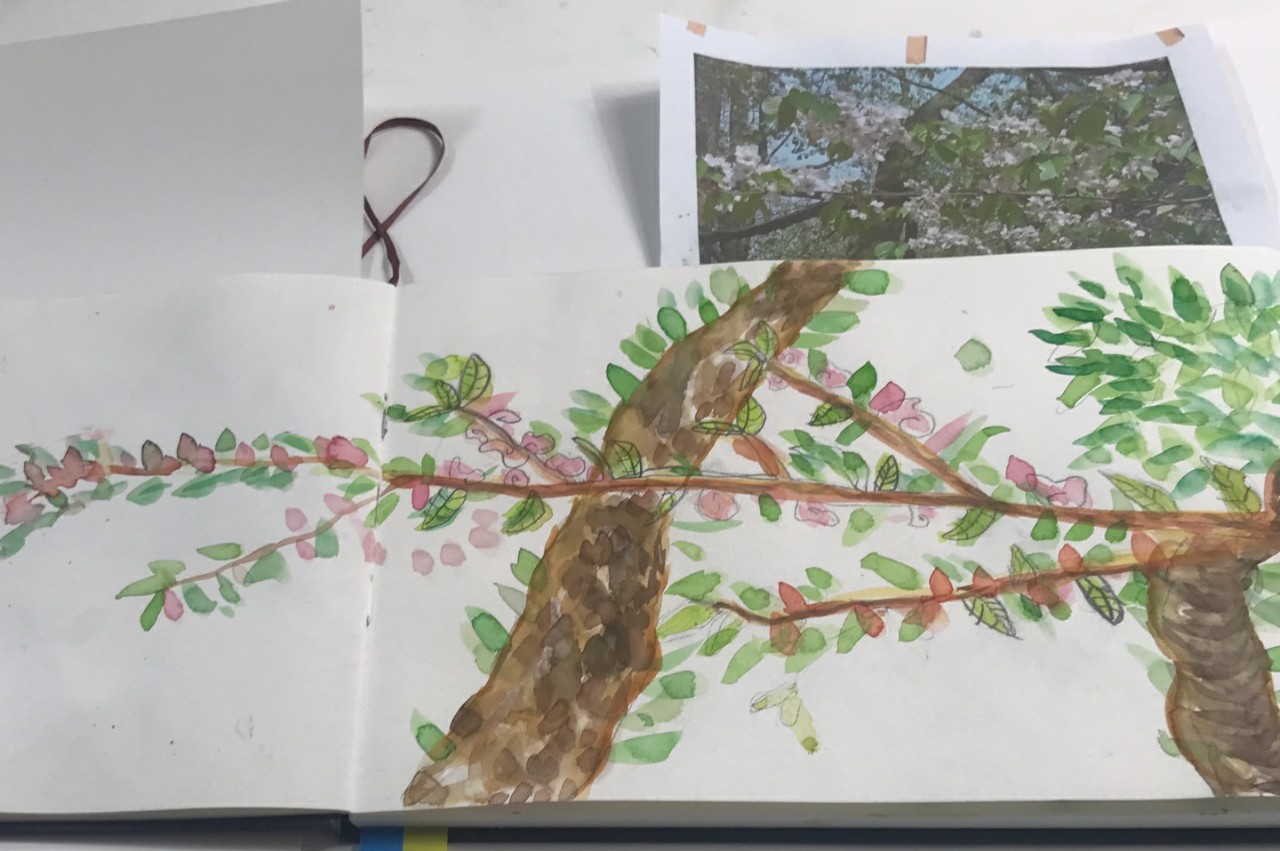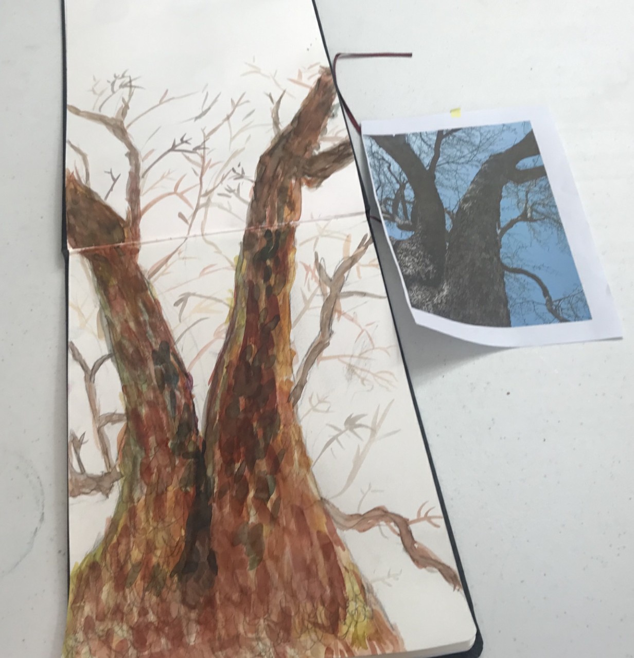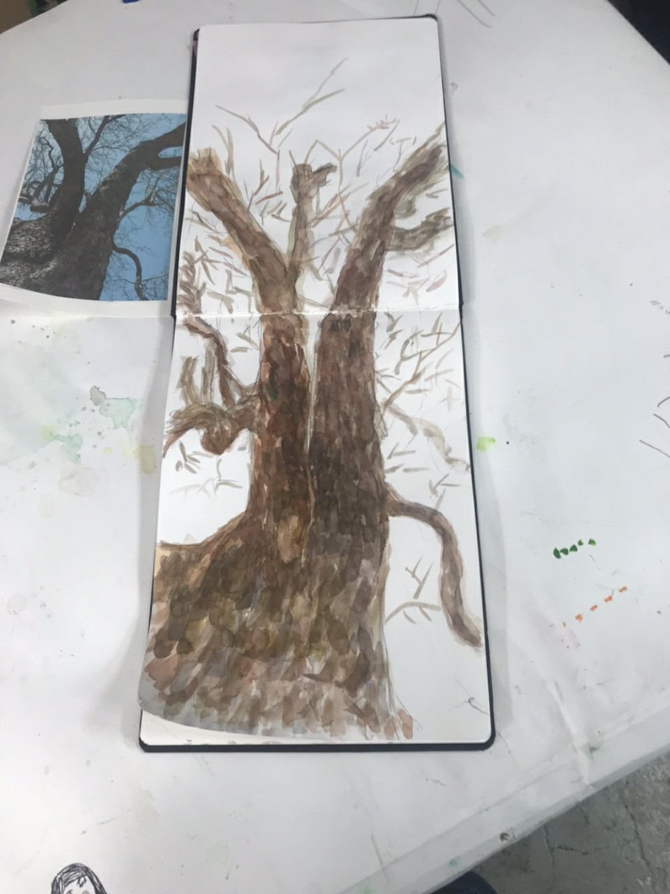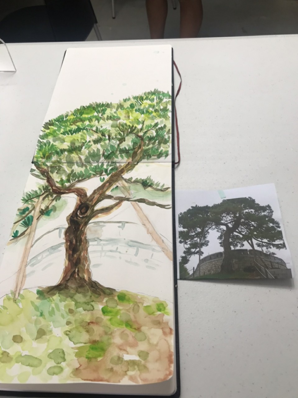 지난주 수업에 이어 밑그림후에 수채화로 나무의 그림을 완성하였습니다.