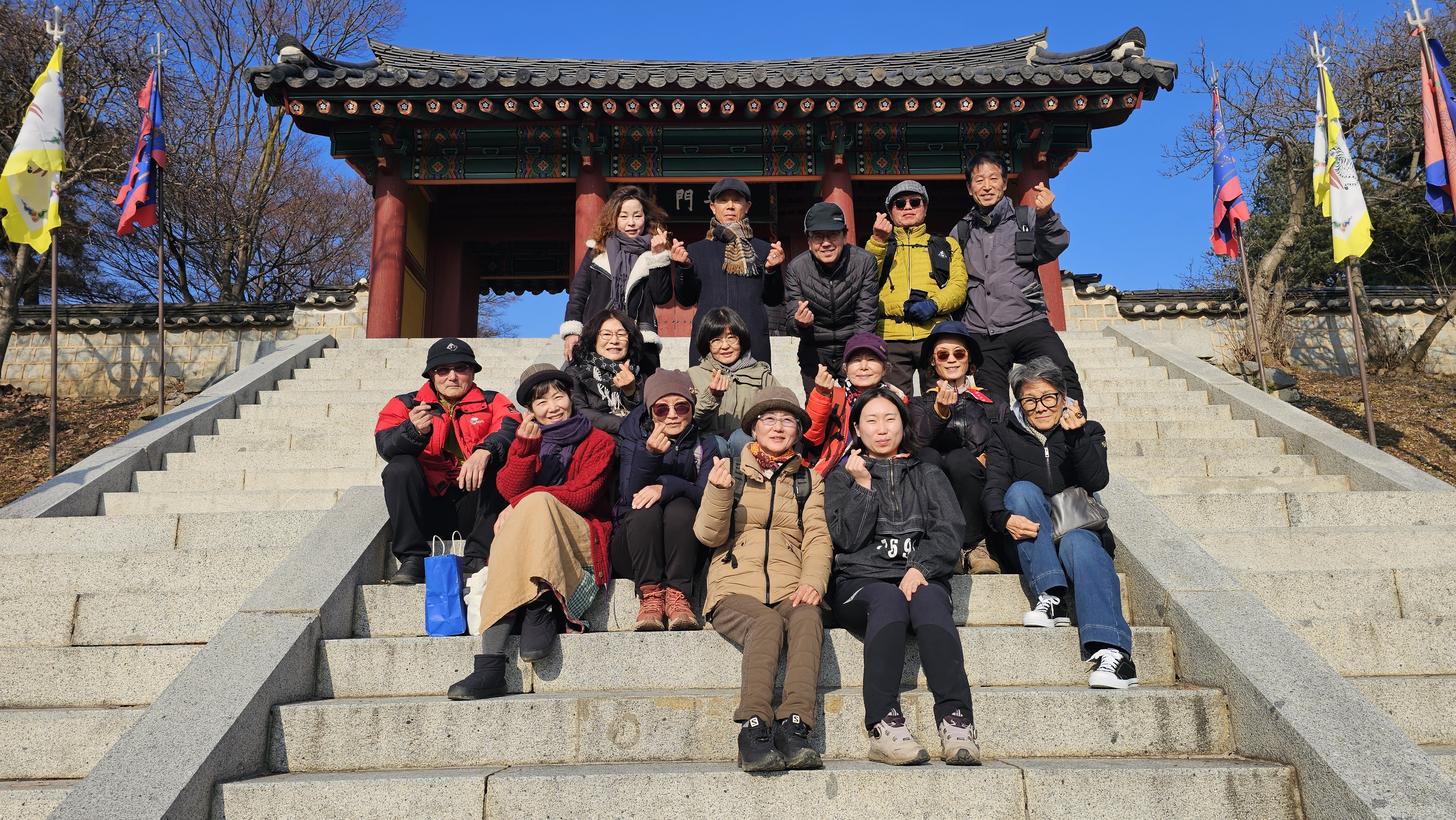 북장대에서 따스한 햇살을 맞으며 잠시 간식시간! 오늘은 송년회가 있으니 간.단하게 귤, 감말랭이, 빠다코코넛, 사과, 배 등을 먹었습니다. 더불어 2026년 계획을 나누는데, 내년이 벌써 기대됩니다 홍홍.